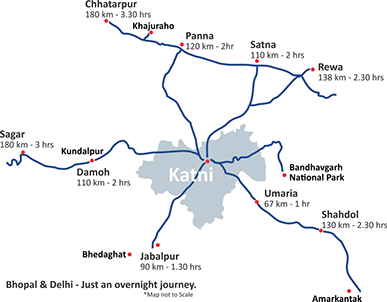 It is the best option for those visiting the industrial area in KATNI which has companies like ACC cement, Ace Calderys Ltd. and Reliance as also for tourists visiting near by areas like KHAJURAHO, CHITRAKOOT, MAIHAR (SHARDA DEVI TEMPLE), DAMOH (KHAJURAHO JAIN TEMPLE), BANDHAVGARAH, PANNA WILDLIFEE SANCTUARIES, AMARKANTAK AND JABALPUR CITY, (BHEDAGHAT) etc.